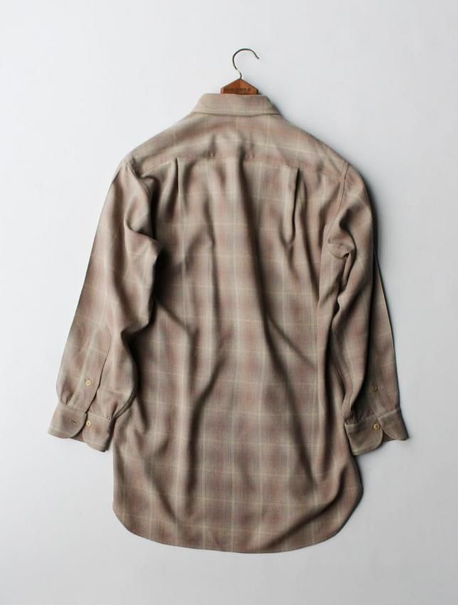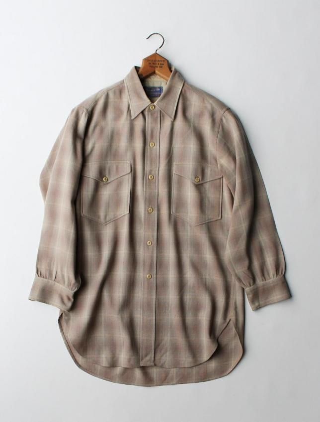 60年代頃のペンドルトンのウールシャツをご紹介します。 淡いベージュとブラウンのシャドーチェックが特徴の一枚です。 裾はラウンドタイプで、ボタンはボディの色味に合わせたペンドルトンらしい作りになっています。 特筆すべきはコンディションで、ウールの状態も良く、ほぼ未使用と言えるほど良好です。 裾がラウンドタイプのため、お値段もお手頃な設定となっています。 サイズも良好ですので、ぜひこの機会にご検討ください。 |