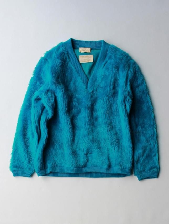 50年代から60年代頃の White Stag 製 Kodiak のご紹介です。 本来、Kodiak は Campus ブランドのネーミングですが、今回はわかりやすく使用しております。 50年代らしい派手なターコイズカラーのボディーは V ネック仕様で、毛足も長く存在感のある一枚です。 首・袖リブも同様にしっかりした作りとなっています。 お気に入りのシャツに合わせて着用していただきたい逸品です。 コンディションは特筆すべきダメージもなく、毛並みも良好です。 近年、同年代頃の毛足の長いアイテムに注目が集まっていますが、比較的お値頃な価格設定ですので、サイズが合う方はぜひご検討ください。 |
