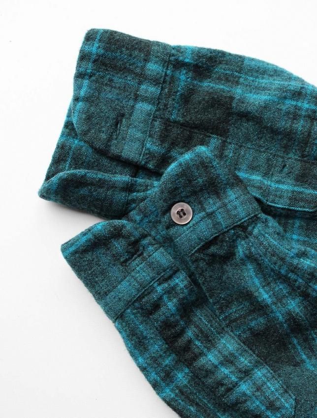 1970年代の PENDLETON(ペンドルトン) ウールシャツ。 深みのあるティールグリーン×ブラックのチェックが印象的な一枚です。 上質なピュアバージンウールを使用し、軽さと保温性を両立。 ふんわりとした質感ながら、しっかりとしたハリを感じられる生地感です。 両胸のフラップポケットはクラシックなディテールでヴィンテージらしい存在感を引き立てます。 表記サイズは L ですが、実寸は 現行のM〜L程度のサイズ感。 身幅・肩幅ともにややコンパクトで、すっきりとしたシルエットになるので実寸をご参考ください。 軽いアウターとしても、インナー使いとしてもバランスの良い一着です。 |