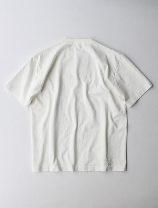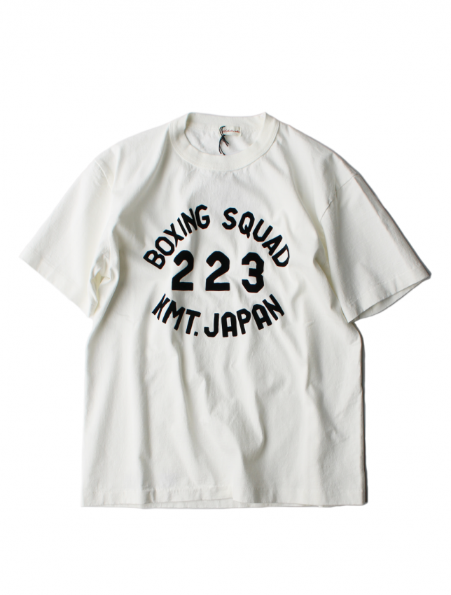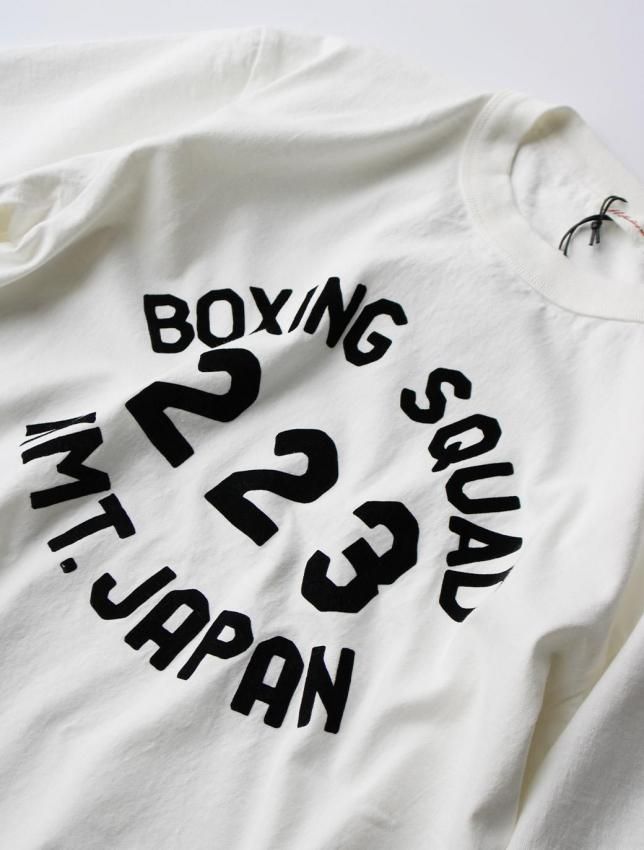 1920年代のアーカイブに残されていたグラフィックをトレースし、 インパクトのある大きめのフロッキープリントで仕上げたTシャツです。 WBAバンタム級世界チャンピオン・堤誠也氏と A.G. SPALDING & BROSのコラボレーションアイテム。 丸胴仕様、バインダーネック、裾と袖の天地縫いなど、 ヴィンテージTシャツの基本的なディテールを踏襲しています。 素材には、程よい厚みのあるヘビーウェイト生地を使用。 クラシックな雰囲気と存在感を併せ持つ一着です。 【着用コメント】 169cm / 着用サイズ:40 ショーツと合わせるなら40、スラックスやジーンズなど、通常丈のパンツなら38がバランス良く着られます。自分なら38を選びます。 179.5cm / 着用サイズ:38 38は着心地も良く、シルエットもきれいでした。ただ、肩幅がある自分には少しタイトに感じたため、購入するなら40を選びます。 162cm / 着用サイズ:36 全体的にゆとりのあるシルエットで、リラックスして着られます。自分用なら36がちょうど良いと感じました。 167cm / 着用サイズ:38 36はぴったりめのサイズ感。38は程よく余裕があり、動きやすさも含めてこちらが好みでした。 しっかりとした肉厚な生地で、インナーが透けにくいのも安心感があります。 |
