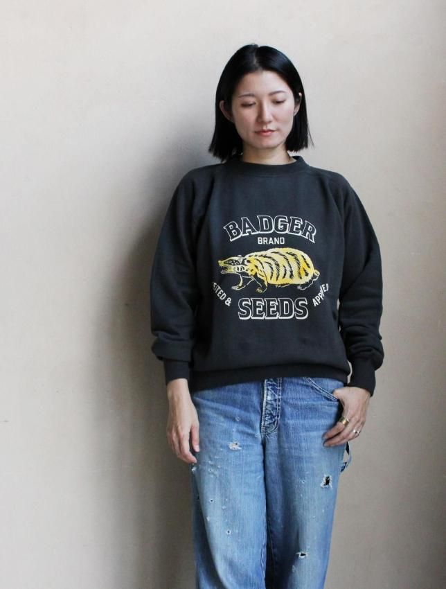 ポートランドのアーティスト”Joshua Minnich"がデザインしたBADGER(アナグマ)をモチーフとしたイラストを、カラーフロッキープリントでアレンジしたコラボレーションアイテム。色合い、洗いで生じるひび割れ感など、ヴィンテージ感ある雰囲気に仕上がりました。 色合い、ひび割れ感など、ヴィンテージ感ある雰囲気に仕上がりました。 ボディーには1960〜70年代の織機で編まれたアズマ裏毛を使用。丸胴・筒状のリブを使用。日本製。 【着用コメント】 167cm / 着用サイズ:38 程よくゆったりとした着用感になりました。 |