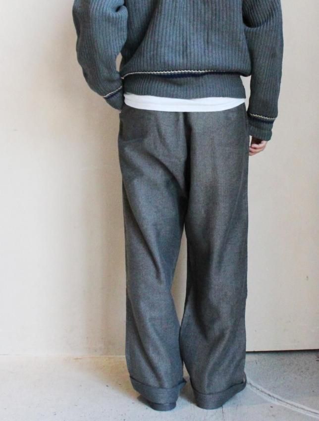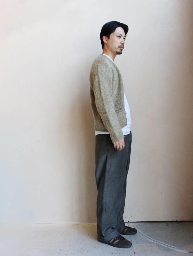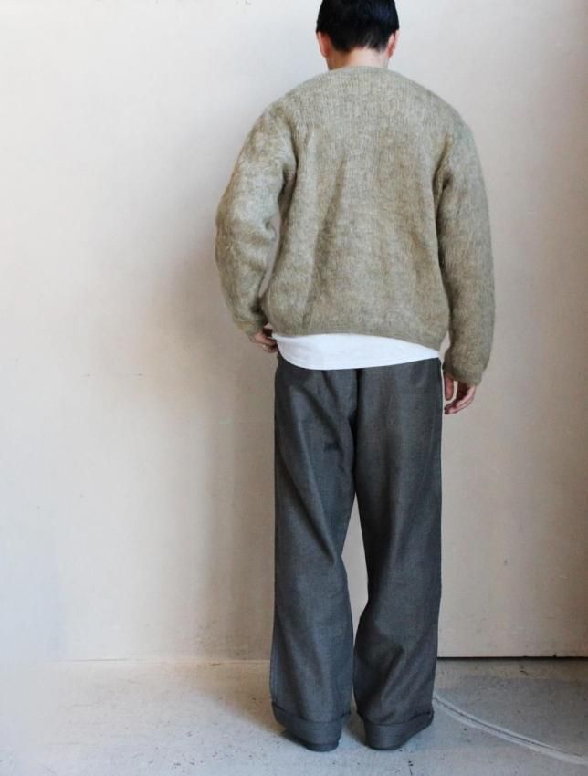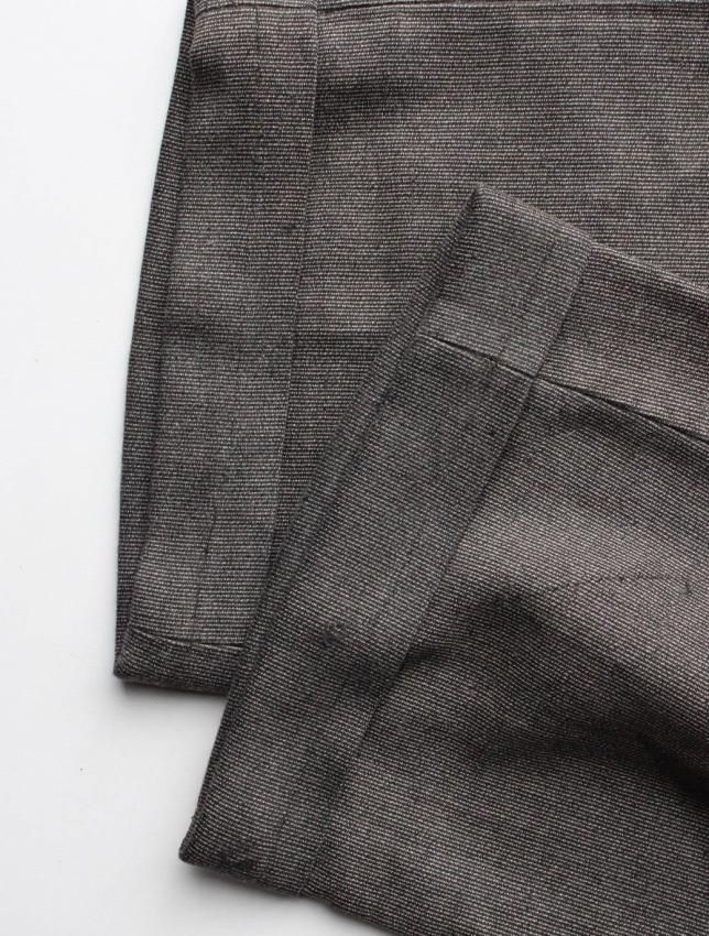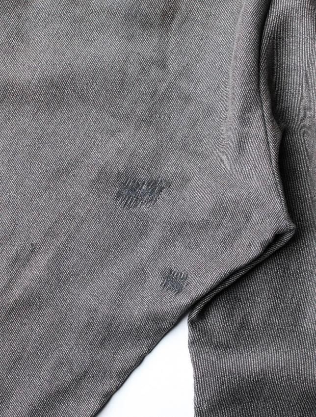 STIFELファブリックを使用したワークトラウザーズ。 股上が深く太めのシルエットのボディには、モールスキンコットンが使用されています。 フロントはボタンフライ仕様で、裾はダブル仕立て。裏面にはSTIFELのスタンプがしっかりと残っており、モールスキン特有のしっとりとした質感と重量感をお楽しみいただけます。 ヴィンテージ市場でも非常に希少性の高い一本です。 多少の使用感が見られ、左膝・フロントポケット・ヒップにリペアがございますが、いずれも雰囲気良く仕上げられています。生地もしっかりと肉厚で、まだまだ永くご着用いただけます。 ダブル仕様の裾は伸ばせば5〜6cmほどまで対応可能。フロントのボタンもすべてオリジナルのまま残っています。 サイズ感も最も需要の高いバランスで、お探しの方も多いアイテムです。 今後ますます買い付けが難しくなることが予想される一本です。 |