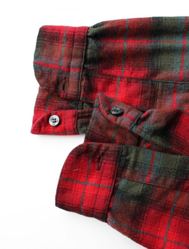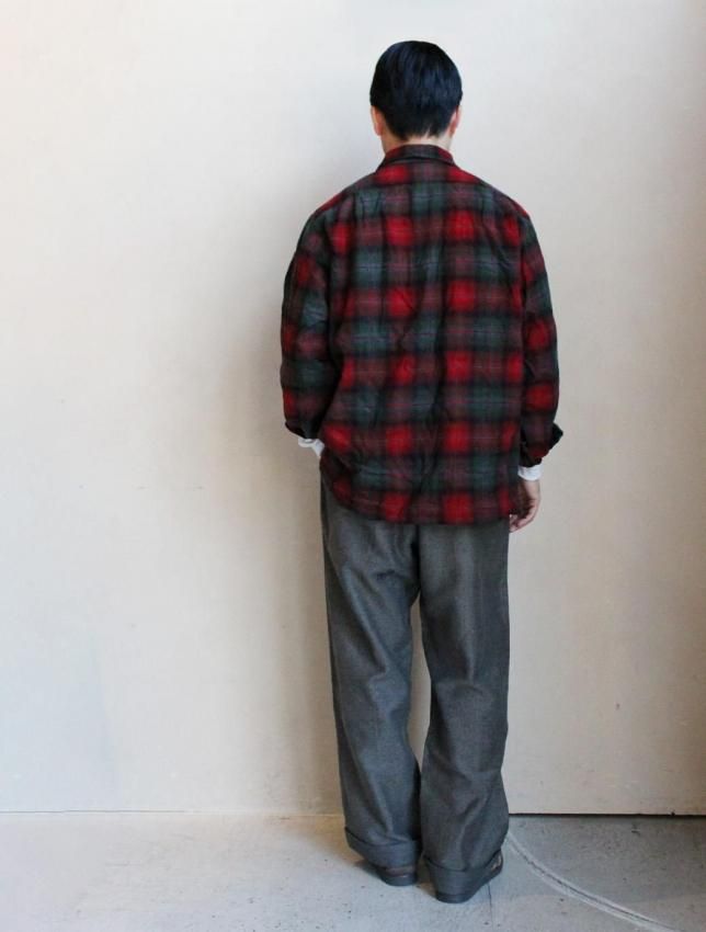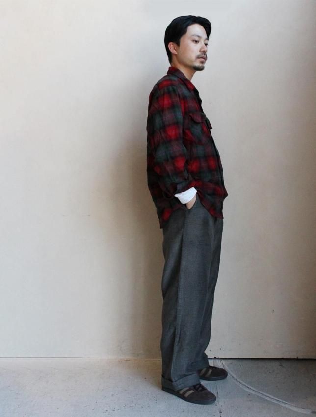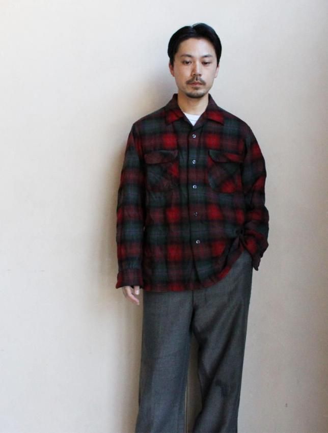 1950年代頃の PENDLETON WOOL SHIRT のご紹介です。 当店でも定番として人気の高い一着で、毎シーズン積極的に買い付けを行っているモデルになります。 こちらはタグの仕様などから、50年代頃の個体と判断できる一枚。 赤・黒・グレーを基調としたスタンダードなチェック柄で、ループカラーのボックスシルエットが特徴です。 温かみのあるクラシックな配色で、これからの季節に一枚で着用するのにも最適。 ウール特有の柔らかな質感と保温性を備えた、ペンドルトンらしい仕上がりです。 コンディションは使用感が少なく、保存状態も良好。 ヴィンテージとしては非常に良いコンディションを保っています。 50年代当時のサイズ感と状態を兼ね備えた個体は近年では入荷も少なくなっており、お探しの方におすすめできる一枚です。 |