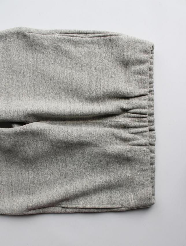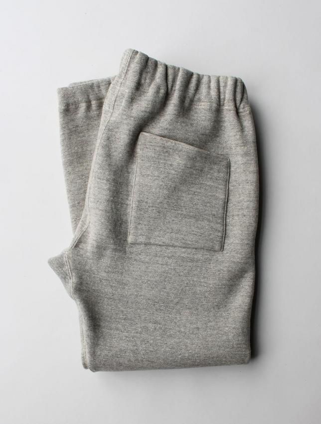 | 1930年代のカタログに掲載されていたシンプルなトレーニングパンツをイメージ。 アーカイブに存在するセパレートポケットパーカのディティールを踏襲した、後ろポケットがアクセント。 膨らみのある吊り裏毛を使用することで、膝の出やすさも緩和、 コーディネートするトップスを選ばないスエットパンツです。 和歌山産吊裏毛使用・日本製。 |