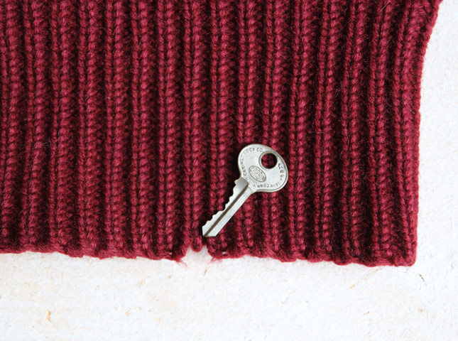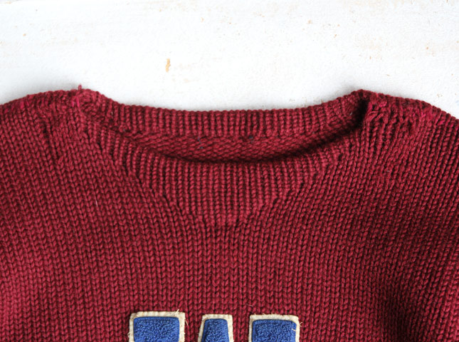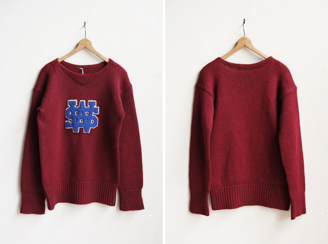 ローゲージで編まれたバーガンディーカラーのセーターでブランドタグはございません。