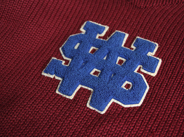 胸には学校のモノグラムのフエルトが縫い付けられています。